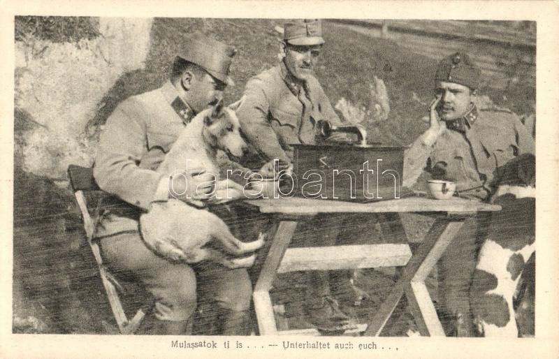 Mulassatok ti is! Osztrák-magyar katonák kutyával és gramofonnal / Unterhaltet auch euch / WWI Austro-Hungarian K.u.K. military soldiers with dog and gramophone