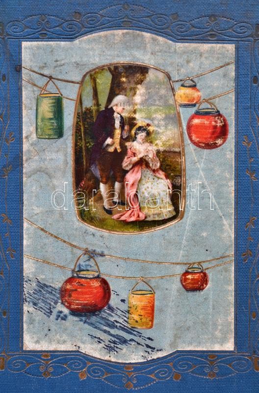 Régi díszes képeslapalbum lithoval az elején, 800 férőhellyel (23 cm x 40 cm) / Old decorated postcard album with a litho on its cover, for 800 postcards (23 cm x 40 cm)