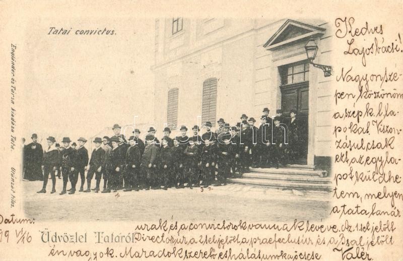 Leírás: 1899 Tata, Tata-Tóváros; Tatai convictus (konviktus), diákok: 1. Direktor úr, 3. levél írója. Engländer és Társa kiadása