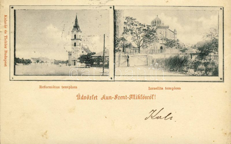 1900 Kunszentmiklós, Református és izraelita templom, zsinagóga. Kalmá... https://www.darabanth.com/hu/329-Gyorsarveres/329.0/Kepeslapok/Magyarorszag~2000005/1900-Kunszentmiklos-Reformatus-es-izraelita-templom-zsinagoga-Kalmar-es-Tichler-kiadasa-k~II916934