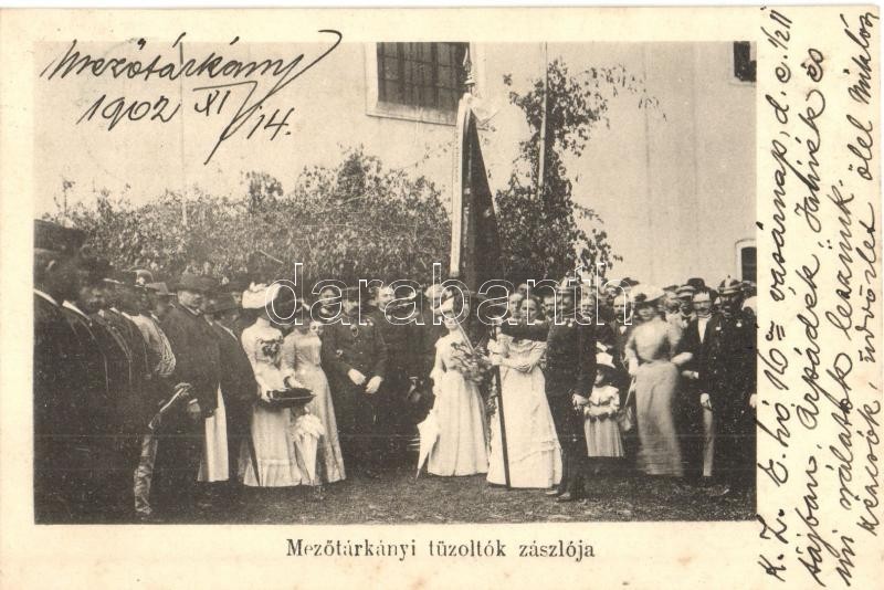 Leírás: 1902 Mezőtárkány, Mezőtárkányi tűzoltók zászlója, zászlóanya