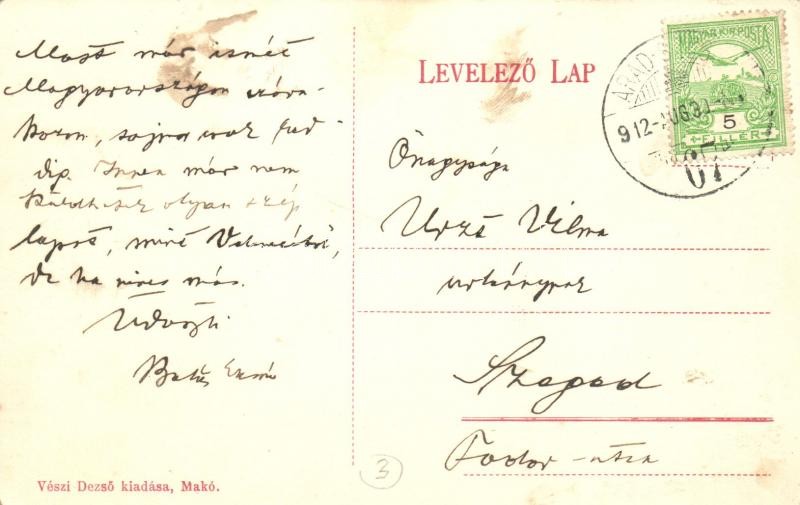 Leírás: 1912 Makó, Piac tér árusokkal, szobor, Joánovits A., Tokár András és Oberliner Mór üzletei. Kiadja Vészi Dezső + Arad-Szeged 67 pecsét