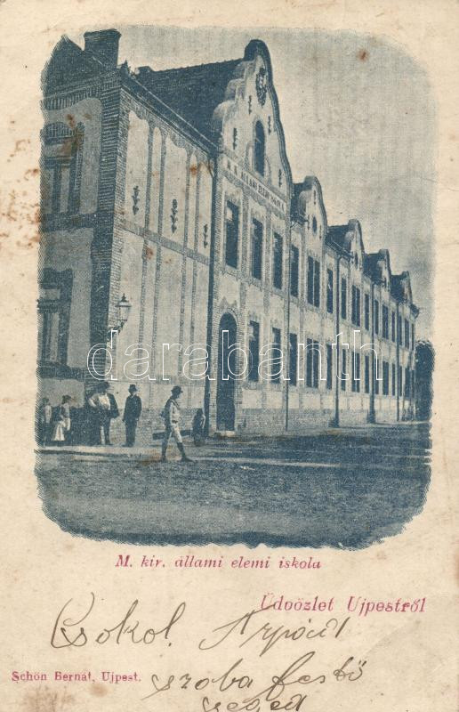 Leírás: Budapest IV. Újpest, Magyar királyi állami elemi iskola, Schön Bernát kiadása (EB)