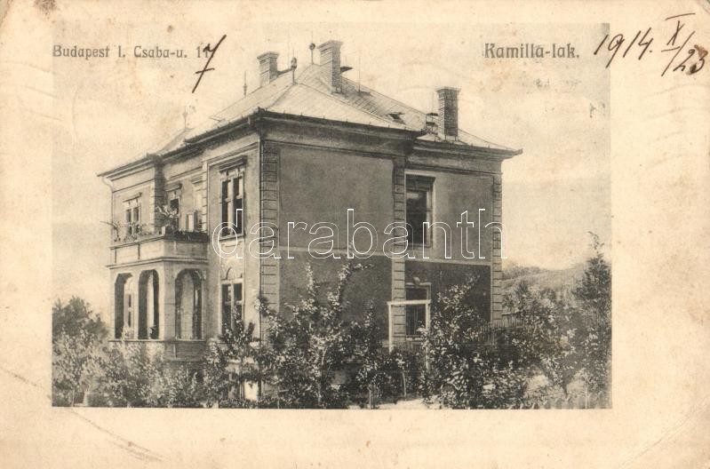 Budapest XII. Csaba utca 11. Kamilla lak, villa. Biró Pál fényképészet... https://www.darabanth.com/hu/329-Gyorsarveres/329.0/Kepeslapok/Magyarorszag~2000005/Budapest-XII-Csaba-utca-11-Kamilla-lak-villa-Biro-Pal-fenykepeszeti-intezetebol-EK~II1836734