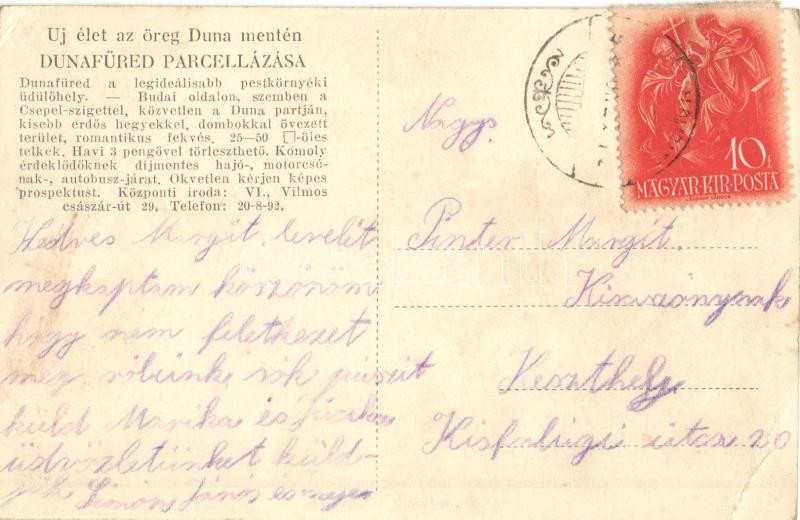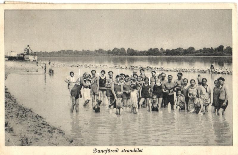Leírás: Dunafüred, Strand élet, fürdőzők + hátoldalon parcellázás reklámja (EK)