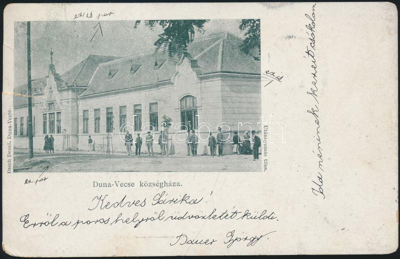 Leírás: Dunavecse, községháza. Basch Dezső kiadása (szakadás / tear)