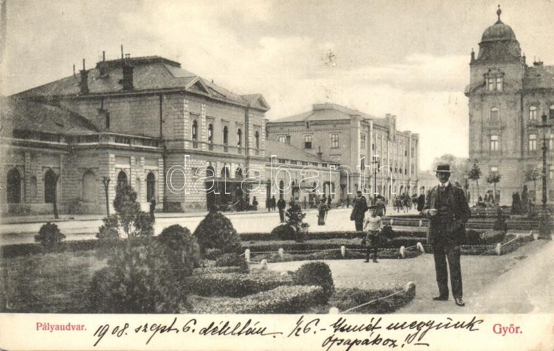 Győr, Vasútállomás. Berecz Victor kiadása https://www.darabanth.com/hu/329-Gyorsarveres/329.0/Kepeslapok/Magyarorszag~2000005/Gyor-Vasutallomas-Berecz-Victor-kiadasa~II1675923