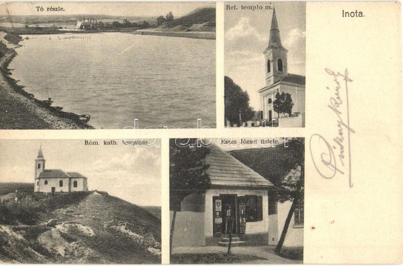 Leírás: Inota (Várpalota), Tó, Református templom, Római katolikus templom, Eszes József üzlete