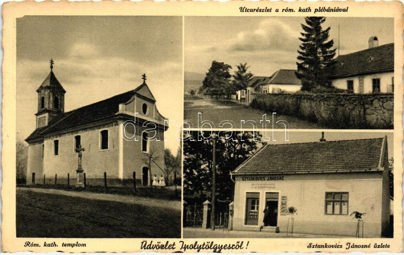 Leírás: Ipolytölgyes, utca, Római katolikus templom és plébánia, Sztankovics Jánosné üzlete
