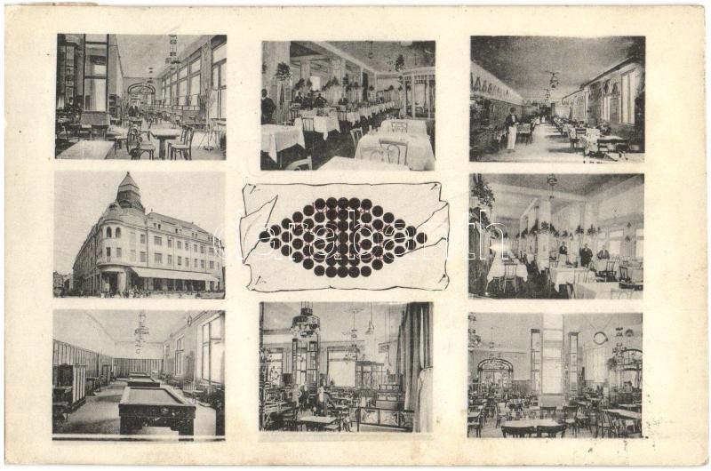 Leírás: Kaposvár, Horváth István Turul kávéháza és vendéglője, étterem, belső és külső nézet, biliárdterem, pincérek