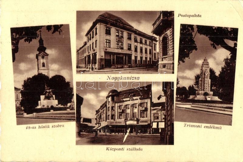 Nagykanizsa, postapalota, Központi szálloda és kávéház, Trianoni emlék... https://www.darabanth.com/hu/329-Gyorsarveres/329.0/Kepeslapok/Magyarorszag~2000005/Nagykanizsa-postapalota-Kozponti-szalloda-es-kavehaz-Trianoni-emlekmu-48-as-hosok-szob~II1660544