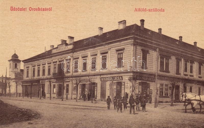 Orosháza, Alföld szálloda, Wigner Géza üzlete. W. L. (?) 1617. https://www.darabanth.com/hu/329-Gyorsarveres/329.0/Kepeslapok/Magyarorszag~2000005/Oroshaza-Alfold-szalloda-Wigner-Geza-uzlete-W-L-1617~II1774096