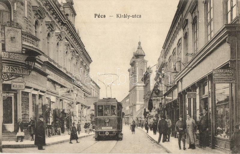 Pécs, Király utca, villamos a főpályaudvar felé, Molnár János, Balog G... https://www.darabanth.com/hu/329-Gyorsarveres/329.0/Kepeslapok/Magyarorszag~2000005/Pecs-Kiraly-utca-villamos-a-fopalyaudvar-fele-Molnar-Janos-Balog-Gyorgy-es-Spiegel-Joz~II1765238