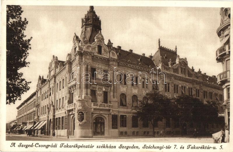 Szeged, Szeged-Csongrádi Takarékpénztár székháza. Széchenyi tér 7. és ... https://www.darabanth.com/hu/329-Gyorsarveres/329.0/Kepeslapok/Magyarorszag~2000005/Szeged-Szeged-Csongradi-Takarekpenztar-szekhaza-Szechenyi-ter-7-es-Takarektar-utca-5-~II1833050
