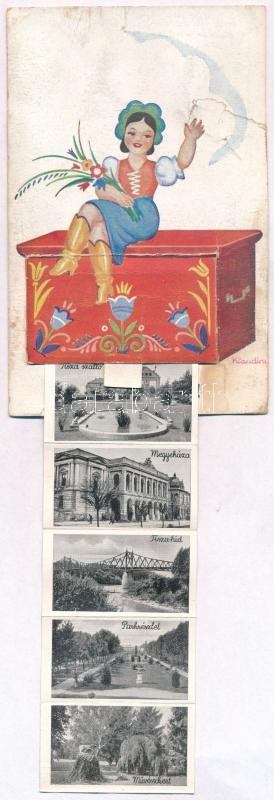 Leírás: Szolnok, népviseletes leporellólap / folklore leporellocard. s: Klaudinyi (fa)