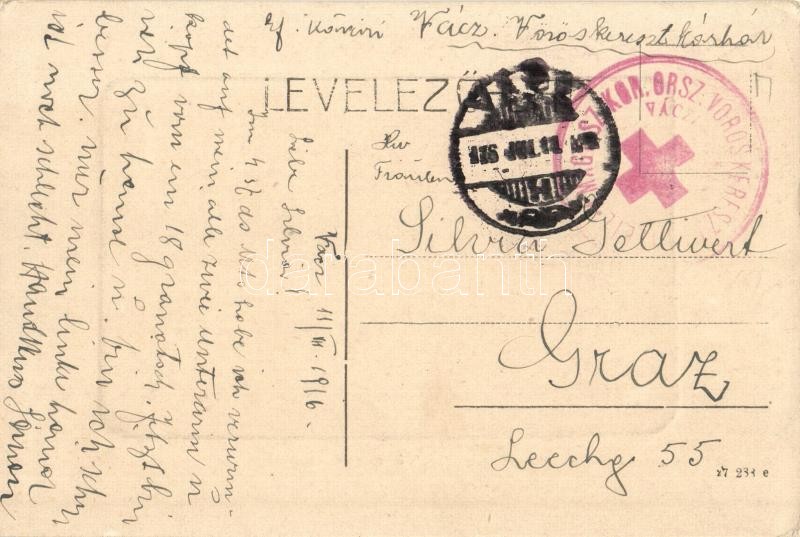Leírás: Vác, Fő tér, templom, + Vöröskereszt So. Stpl. (EK)