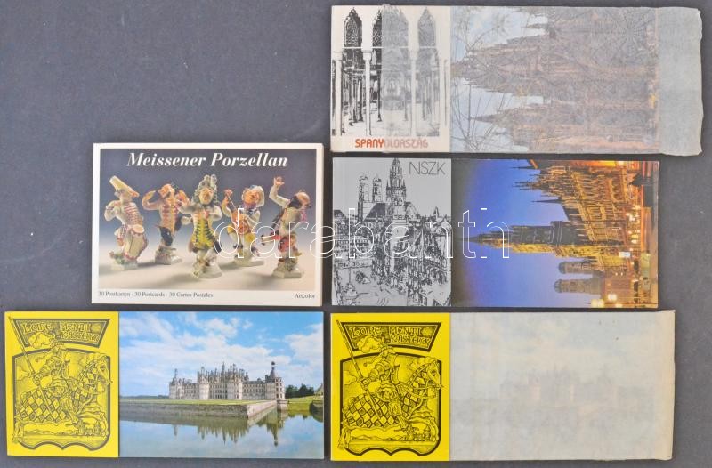 5 db MODERN képeslapfüzet: NSZK, Loire menti kastélyok (2 db), Spanyolország, Meissen porcelán / 5 MODERN postcard booklets: West Germany, Spain, Châteaux of the Loire Valley (2), Meissener porcelain