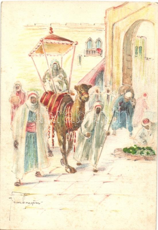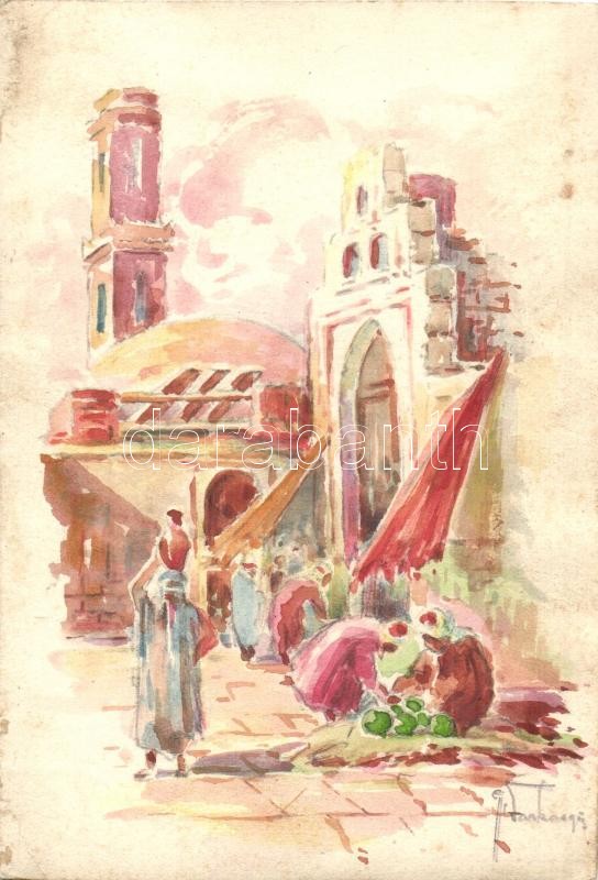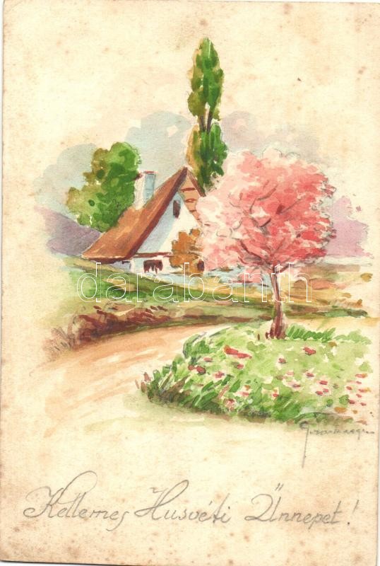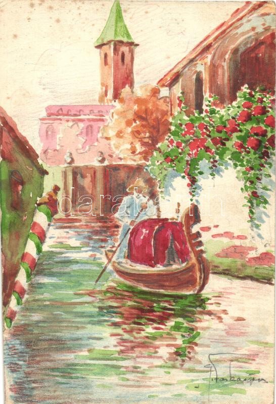 5 db régi eredeti kézzel festett művészlap Farkas G. (?) aláírásával / 5 pre-1945 original hand painted art postcards with the signature of G. Farkas (?)