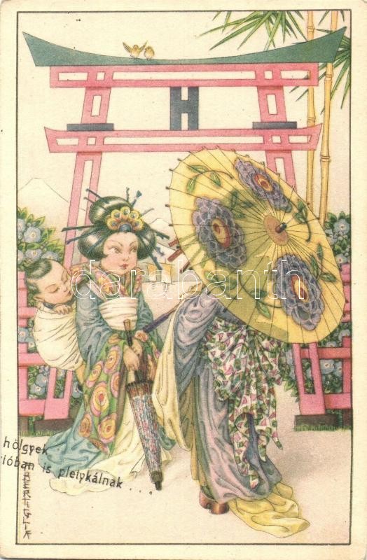 Japanese geishas. Italian art postcard. N.M.M. 475/8. s: Bertiglia https://www.darabanth.com/hu/329-Gyorsarveres/329.0/Kepeslapok/Muveszlapok~2000035/Japanese-geishas-Italian-art-postcard-NMM-4758-s-Bertiglia~II1791011