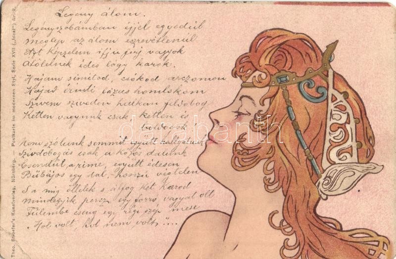 Lady. Art Nouveau. Theo. Stroefer Serie XVII. Nr. 2. litho (EK) https://www.darabanth.com/hu/329-Gyorsarveres/329.0/Kepeslapok/Muveszlapok~2000035/Lady-Art-Nouveau-Theo-Stroefer-Serie-XVII-Nr-2-litho-EK~II1837433