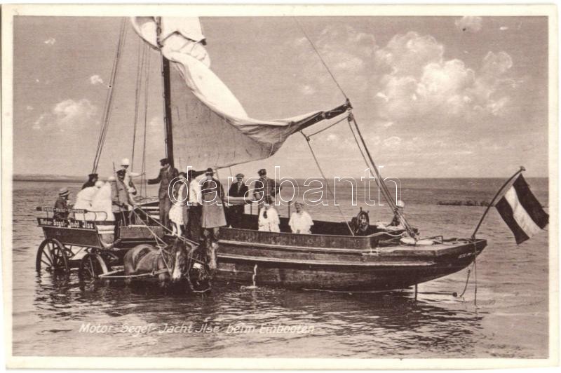 Leírás: Juist, Motor-Segel Jacht "Ilse" beim Einbooten / motor yacht Ilse while boarding