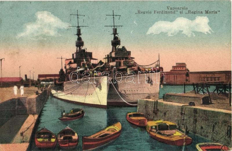 Constanta, Konstanca; Perla Marei Negre, Vapoarele Regele Ferdinand si Regina Maria. Edit. Libraria Dobrogeana Nr. 95. 1934. / Romanian Navy's Regele Ferdinand class destroyers in the harbor, dock, battleships (Rb)