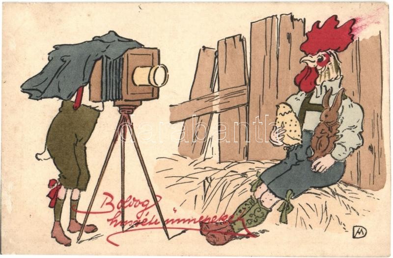 Leírás: 1910 Boldog húsvéti ünnepeket! / Easter greeting, rooseter, photographer, H.&L. Nr. 918.