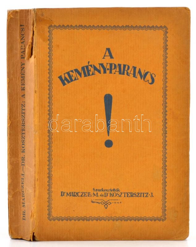 A kemény parancs. Összeáll. Dr. Marczell Mihály és Dr. Koszterszitz József. Bp., 1928, "Élet" Irodalmi Nyomda és Rt. Első kiadás. Kiadói papírkötés, szakadozott gerinccel.