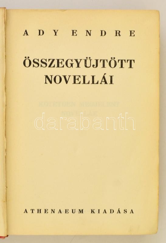 Ady Endre összegyűjtött novellái. Bp.,é.n.,Athenaeum. Kiadói kopott eg... https://www.darabanth.com/hu/329-Gyorsarveres/329.0/Konyvek/Konyvek-Egyeb-ritkasagok~1000018/Ady-Endre-osszegyujtott-novellai-Bp-en-Athenaeum-Kiadoi-kopott-egeszvaszon-kotes-~II1818729