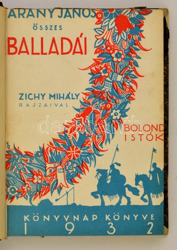 Arany János összes balladái Zichy Mihály rajzaival. Bolond Istók. Beöthy Zsolt, Voinovich Géza tanulmányai. Arany János halálának ötvenéves fordulójára. Bp., 1932, Magyar Könyvkiadók és Könyvkereskedők Országos Egyesülete,190+2 p. Átkötött korabeli aranyozott gerincű félbőr-kötés, az eredeti elülső papírborítót bekötötték, a papírborító körbevágott, kopott gerincccel és borítóval, a Zichy Mihály illusztrációk hiányoznak.