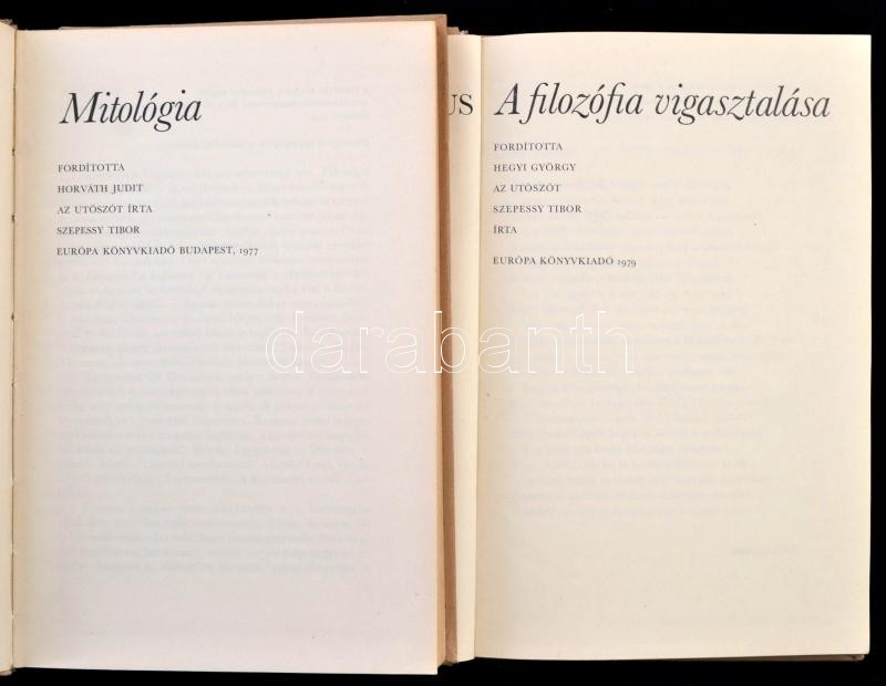 Apollodórosz: Mitológia. Fordította: Horváth Judit. Az utószót írta: Szepessy Tibor. Bp.,1977, Európa. Kiadói kartonált papírkötés.