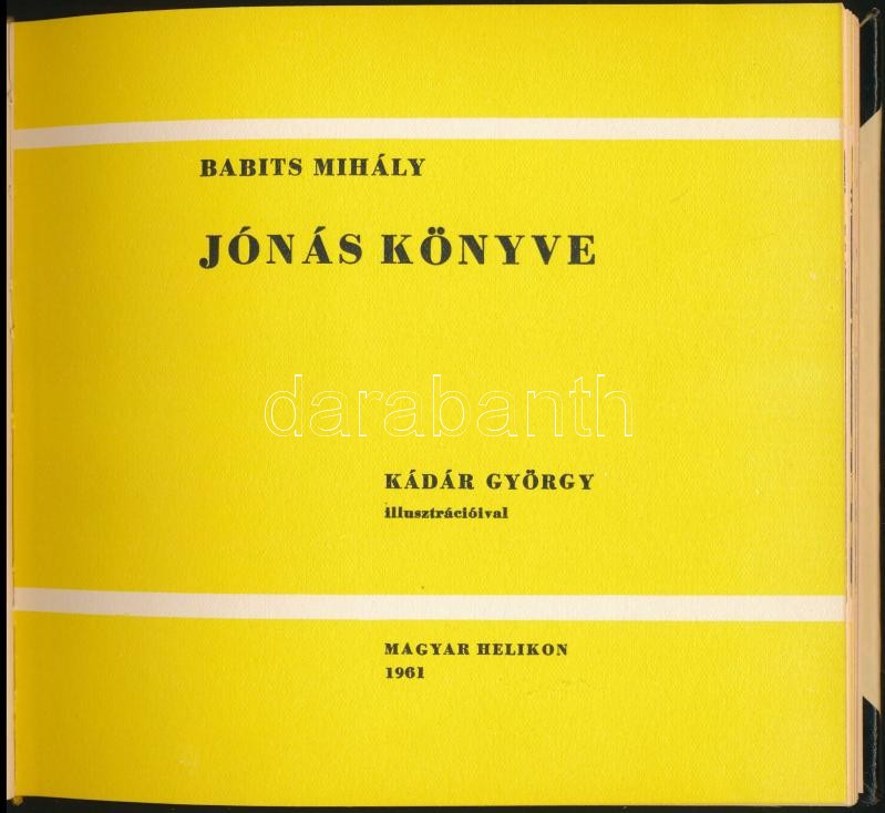 Babits Mihály: Jónás könyve. Kádár György illusztrációival. Bp., 1961,... https://www.darabanth.com/hu/329-Gyorsarveres/329.0/Konyvek/Konyvek-Egyeb-ritkasagok~1000018/Babits-Mihaly-Jonas-konyve-Kadar-Gyorgy-illusztracioival-Bp-1961-Magyar-Helikon-Kiad~II1713288