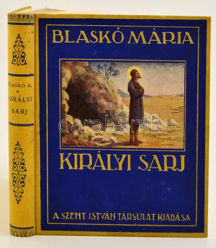 Blaskó Mária: Királyi Sarj. Elbeszélés Szent József korából. A borító és az illusztrációk Mosdóssy Imre (1904-1995) festő, grafikus munkái. Bp.,1929, Szent István-Társulat. Egészoldalas illusztrációkkal. Kiadói illusztrált festett egészvászon-kötés, jó állapotban
