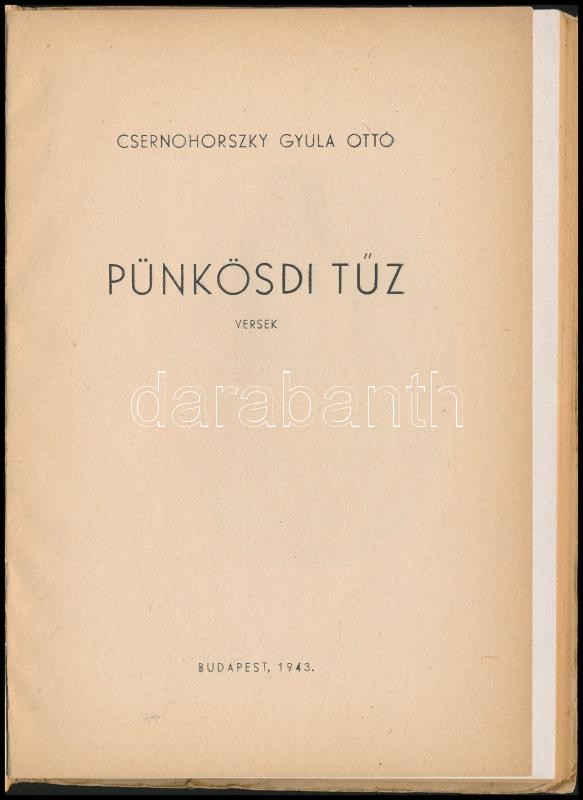 Csernohorszky Gyula Ottó: Pünkösdi tűz. Versek. Bp.,1943, Hunnia-nyomd... https://www.darabanth.com/hu/329-Gyorsarveres/329.0/Konyvek/Konyvek-Egyeb-ritkasagok~1000018/Csernohorszky-Gyula-Otto-Punkosdi-tuz-Versek-Bp-1943-Hunnia-nyomda-Kft-1-tplus64-p-Kiadoi~II1791162