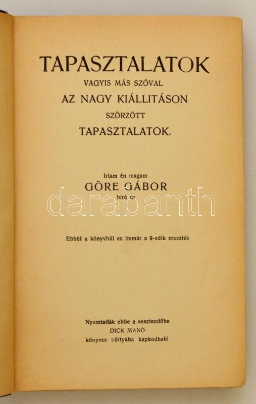Göre Gábor (Gárdonyi Géza): Tapasztalatok Bp., 1925, Globus. Mühlbec... https://www.darabanth.com/hu/329-Gyorsarveres/329.0/Konyvek/Konyvek-Egyeb-ritkasagok~1000018/Gore-Gabor-Gardonyi-Geza-Tapasztalatok-Bp-1925-Globus-Muhlbeck-Karoly-szovegkozti-i~II1746561