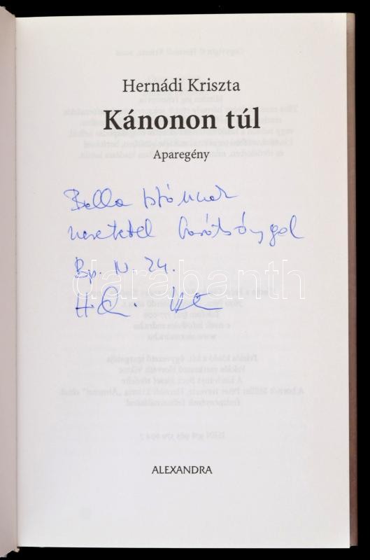 Leírás: Hernádi Kriszta: Kánonon túl. Aparegény. Pécs, 2008, Alexandra. Kiadói kartonált papírkötés, kiadói papír védőborítóban. A szerző által dedikált.