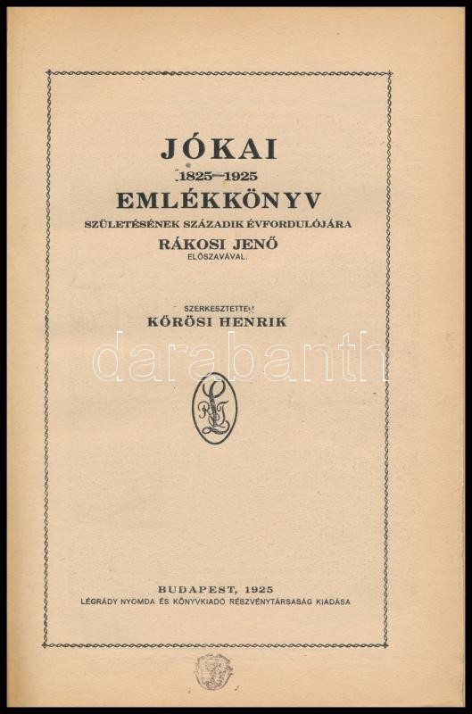 Jókai Emlékkönyv születésének századik évfordulójára. 1825-1925. Rákos... https://www.darabanth.com/hu/329-Gyorsarveres/329.0/Konyvek/Konyvek-Egyeb-ritkasagok~1000018/Jokai-Emlekkonyv-szuletesenek-szazadik-evfordulojara-1825-1925-Rakosi-Jeno-eloszavav~II1774531