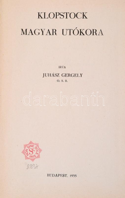 Juhász Gergely: Klopstock magyar utókora. Minerva-könyvtár XLVIII. Bp.... https://www.darabanth.com/hu/329-Gyorsarveres/329.0/Konyvek/Konyvek-Egyeb-ritkasagok~1000018/Juhasz-Gergely-Klopstock-magyar-utokora-Minerva-konyvtar-XLVIII-Bp-1935-Minerva-Kiadoi-p~II1571474