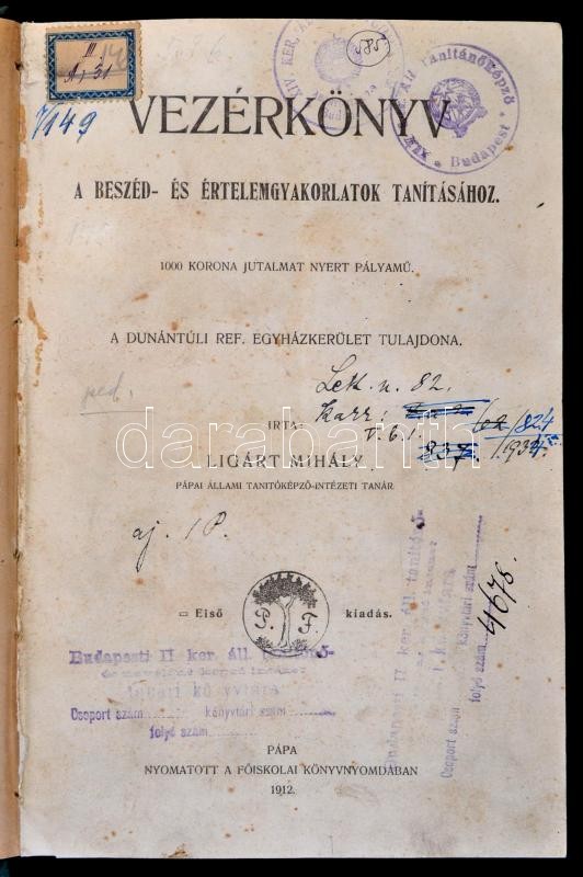 Ligárt Mihály: Vezérkönyv a beszéd- és értelemgyakorlatok tanításához. Pápa, 1912, Főiskolai-ny. Átkötött kissé kopottas félvászon-kötés, intézményi bélyegzőkkel, volt könyvtári példány.