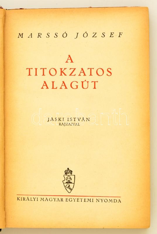 Marssó József: A titokzatos alagút. Jaski István rajzaival. Bp.,é.n., Kir. Magyar Egyetemi Nyomda. Kiadói kopottas félvászon-kötés, de belül jó állapotban.