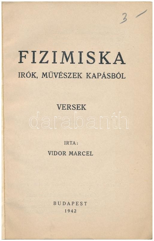 Leírás: Nagy Endre: A mágocsi csirkék. Bp., Lampel. Kiadói papírkötés, megviselt állapotban + Bálint György: Az idő rabságában. Bp., Viktória. Kiadói papírkötés, megviselt állapotban. + Vidor Marcel: Fizimiska. Bp., 1942. Kiadói papírkötés, megviselt állapotban.