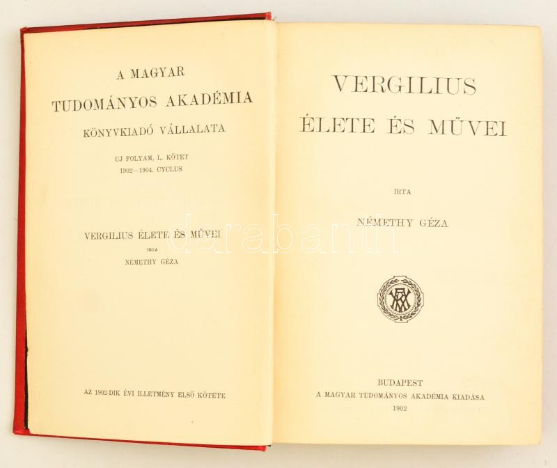 Némethy Géza: Vergilius élete és művei. Bp., 1902, MTA. Kiadói egészvá... https://www.darabanth.com/hu/329-Gyorsarveres/329.0/Konyvek/Konyvek-Egyeb-ritkasagok~1000018/Nemethy-Geza-Vergilius-elete-es-muvei-Bp-1902-MTA-Kiadoi-egeszvaszon-kotes-kisse-f~II1818933
