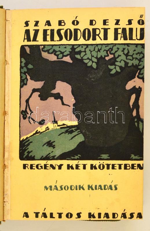 Szabó Dezső: Az elsodort falu I-II. Bp., 1920, Táltos Kiadása, 280+279+1 p. Második kiadás. Átkötött félvászon, az eredeti illusztrált papírborítókat bekötötték, az első papírborító széle körbevágott, a lapszéleken folttal.