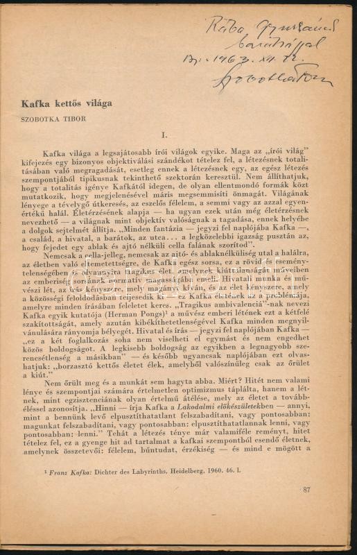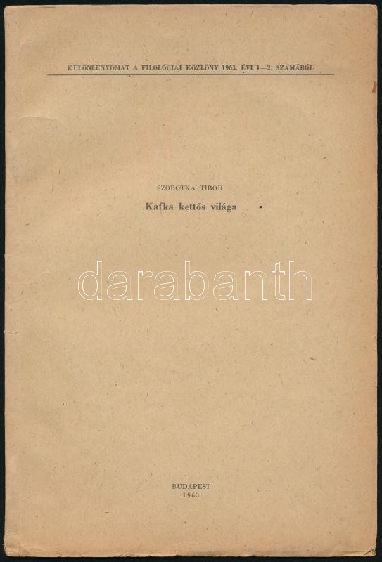 Szobotka Tibor: Kafka kettős világa. Dedikált! Különlenyomat. Bp., 196... https://www.darabanth.com/hu/329-Gyorsarveres/329.0/Konyvek/Konyvek-Egyeb-ritkasagok~1000018/Szobotka-Tibor-Kafka-kettos-vilaga-Dedikalt-Kulonlenyomat-Bp-1963-26p~II1836497