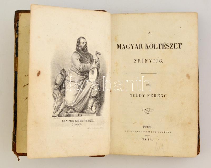 Toldy Ferenc: A magyar költészet története. I-II. kötet. (Egybekötve.) I. kötet. A magyar költészet Zrínyiig. II. kötet: A magyar költészet Zrínyitől Kisfaludy Sándorig. Pest, 1854, Heckenast Gusztáv, (Landerer és Heckenast-ny.),