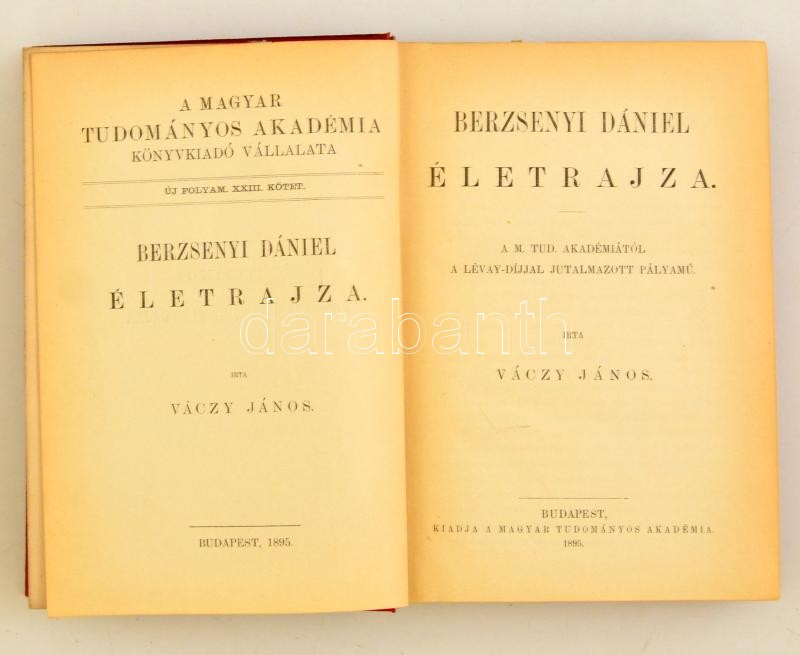 Váczy János: Berzsenyi Dániel életrajza. Bp., 1895, MTA, 1t.+VI+2+432 ... https://www.darabanth.com/hu/329-Gyorsarveres/329.0/Konyvek/Konyvek-Egyeb-ritkasagok~1000018/Vaczy-Janos-Berzsenyi-Daniel-eletrajza-Bp-1895-MTA-1tplusVIplus2plus432-p-Kiadoi-egeszvaszon-k~II1818941