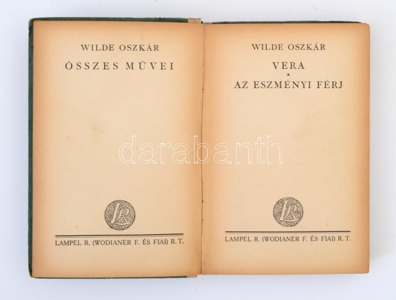 Wilde, Oscar: Vera. Az eszményi férj. [Bp.], é. n., Lampel (Wilde Oszk... https://www.darabanth.com/hu/329-Gyorsarveres/329.0/Konyvek/Konyvek-Egyeb-ritkasagok~1000018/Wilde-Oscar-Vera-Az-eszmenyi-ferj-Bp-e-n-Lampel-Wilde-Oszkar-osszes-muvei-Kicsit~II1427771
