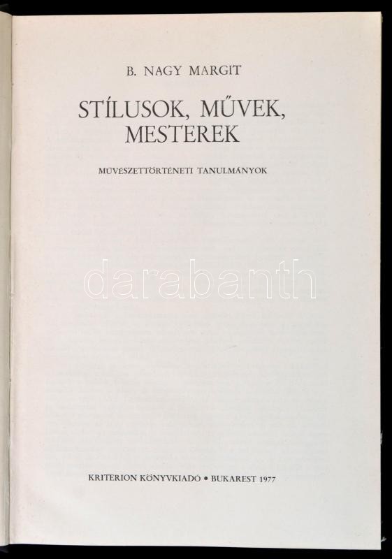 B. Nagy Margit: Stílusok, művek, mesterek. Művészettörténeti tanulmány... https://www.darabanth.com/hu/329-Gyorsarveres/329.0/Konyvek/Konyvek-Epiteszet-muveszet~1000006/B-Nagy-Margit-Stilusok-muvek-mesterek-Muveszettorteneti-tanulmanyok-Bukarest-1977-Kri~II1820532