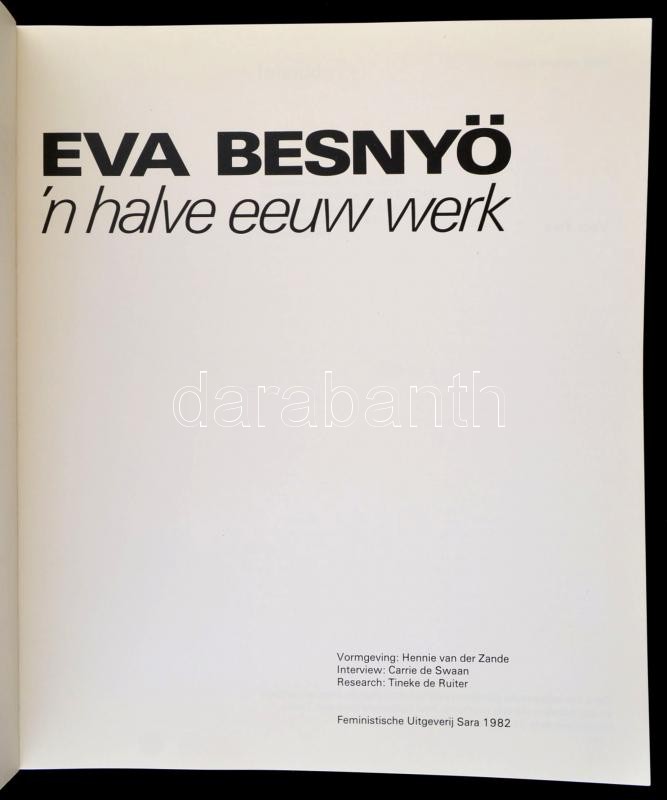 Eva Besnyő 'n halve eeuw werk. 1982, Feministische Uitgeverij Sar... https://www.darabanth.com/hu/329-Gyorsarveres/329.0/Konyvek/Konyvek-Epiteszet-muveszet~1000006/Eva-Besnyo-n-halve-eeuw-werk-1982-Feministische-Uitgeverij-Sara-plus-kiallitasi-katalogus-Kia~II1800714