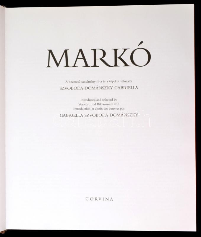 Markó. A bevezető tanulmányt írta és a képeket válogatotta: Szvobda Dománszky Gabriella. Bp.,2004,Corvina. Kiadói egészvászon-kötés, kiadói papír védőborítóban.